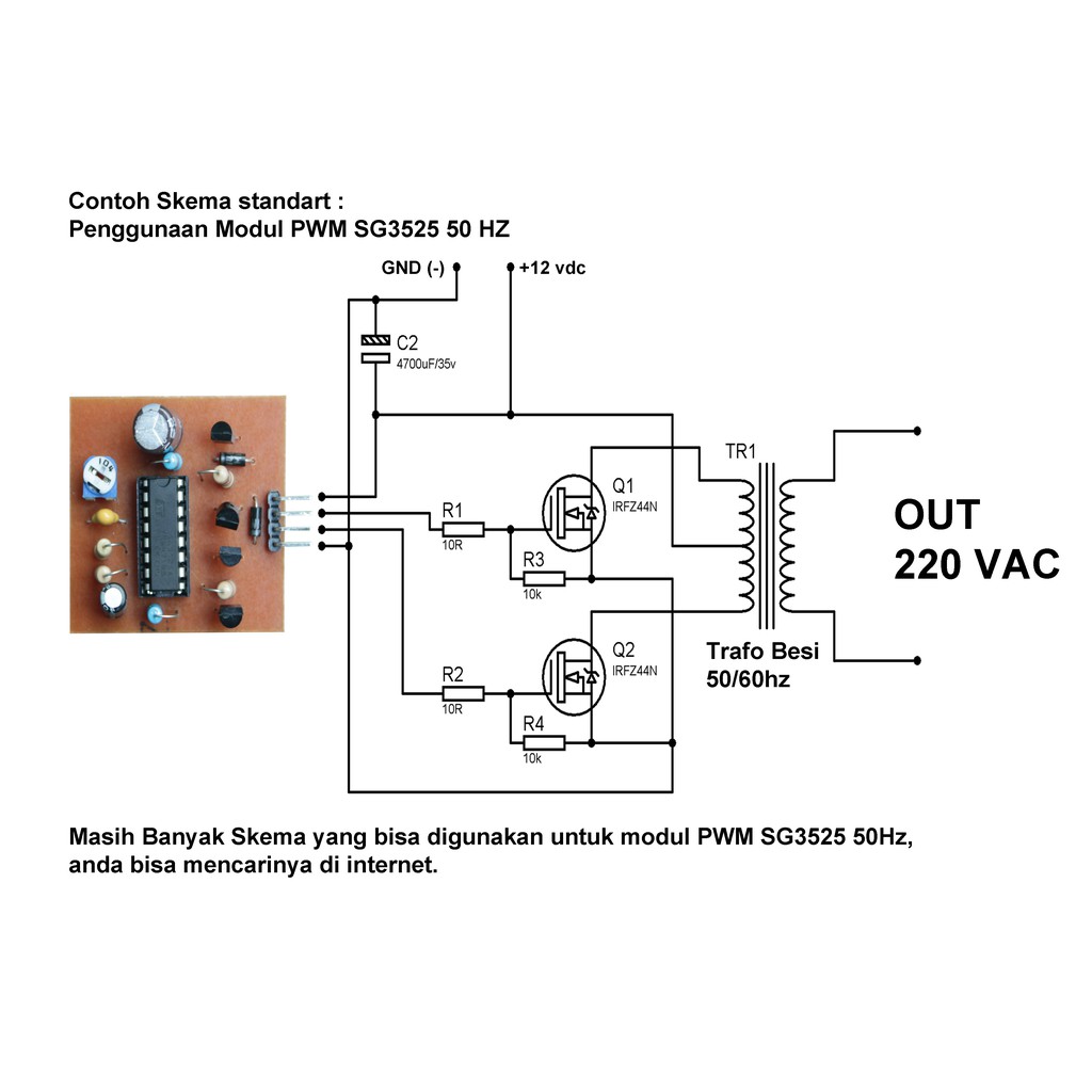 Skema inverter 12 vdc ke 220 vac.